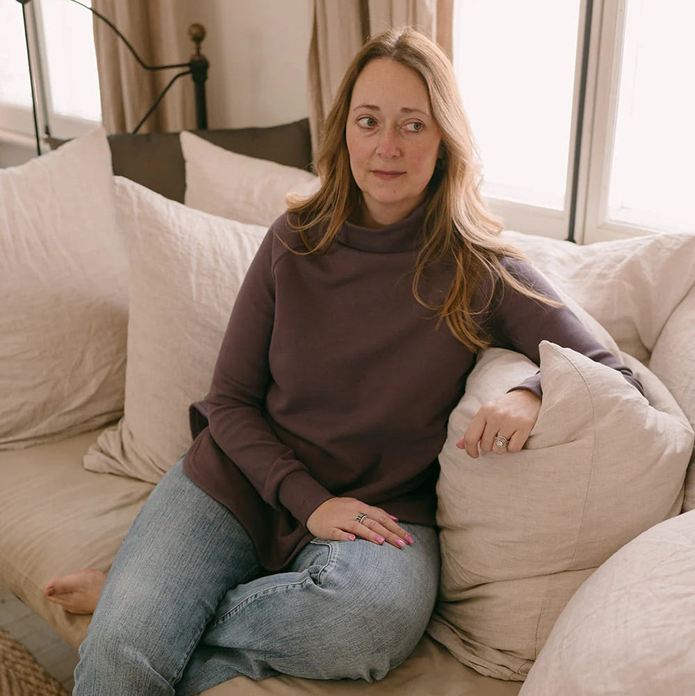 Your everyday sweater is calling! The Dusk Sweater has an amazingly dramatic mock neck, nice long sleeves, perfect relaxed body, slight slit in the sides and contoured high low hemline. It is literal perfection in a sweater and you will want it in all the colours! Try it with your favourite pair of jeans. Get ready for all the compliments in this soft, stretchy Canadian made sweater.