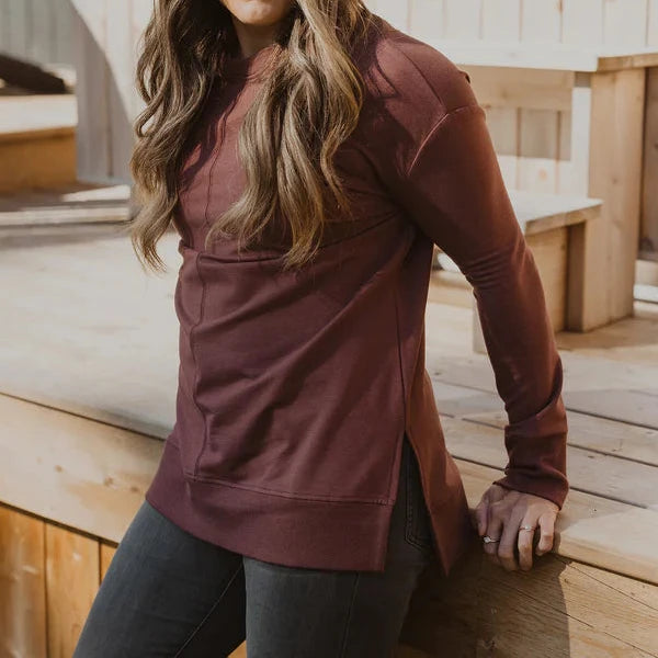 The Wheat Sweater is the holy grail of laid back pieces that goes with all your looks and you will feel amazing in. Starting with our super soft signature bamboo fabric, we designed this stunner to go easily from lazy mornings on the couch to relaxed afternoons running errands. It has a perfect crew neck, slight drop shoulder, relaxed body and side slits. You will be wearing this all year round with everything from leggings to jean shorts!
