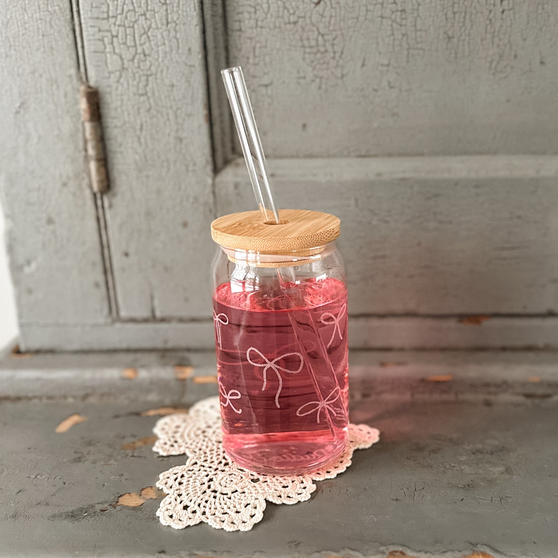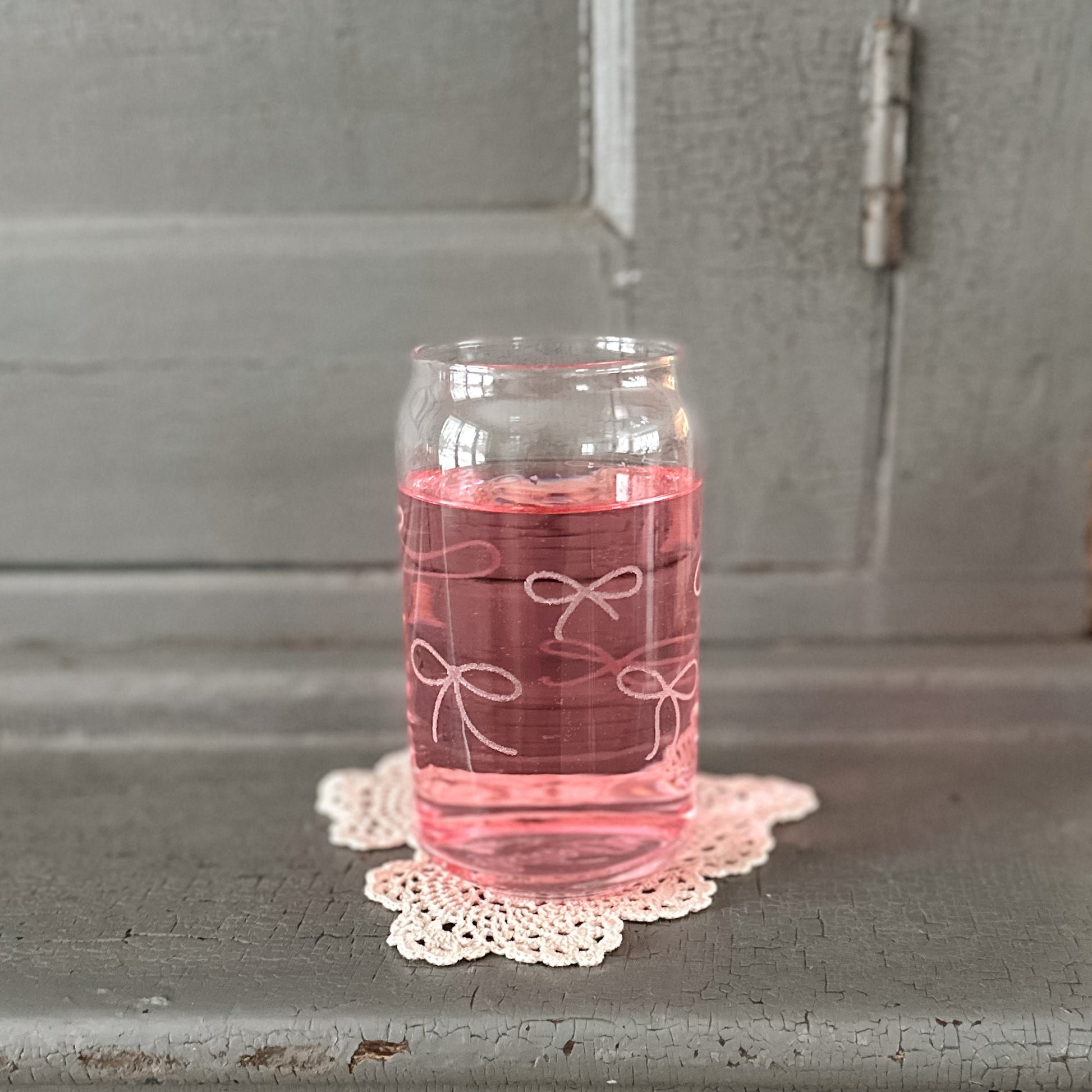 16 oz. drinking glass with the sweetest little bows!
