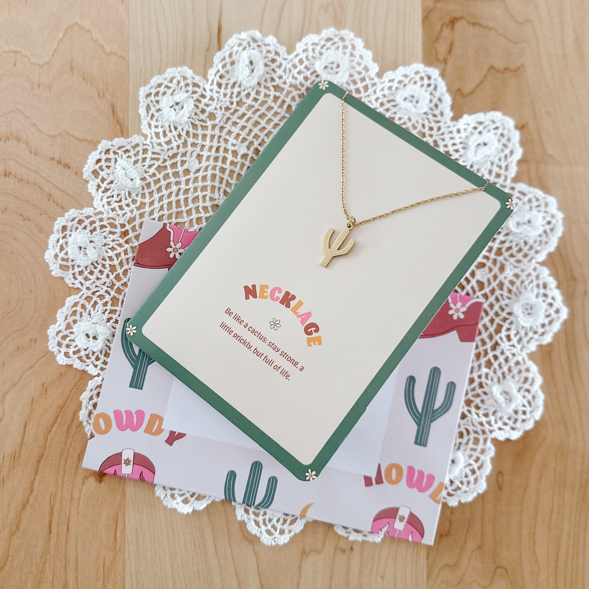 Card reads "Be like a cactus: Stay strong, a little prickly, but full of life." Blank inside for your message.