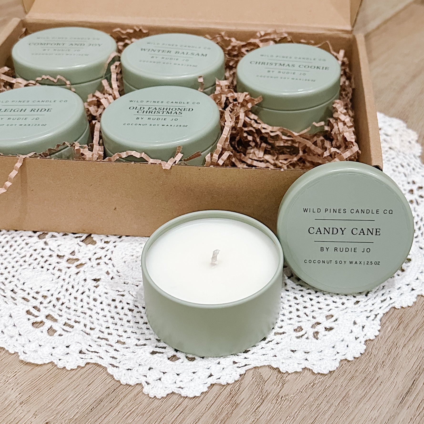 Having trouble deciding, or like to have gifts on hand? This bundle comes with one of each of the six holiday scents in super cute 2oz sample size tins!