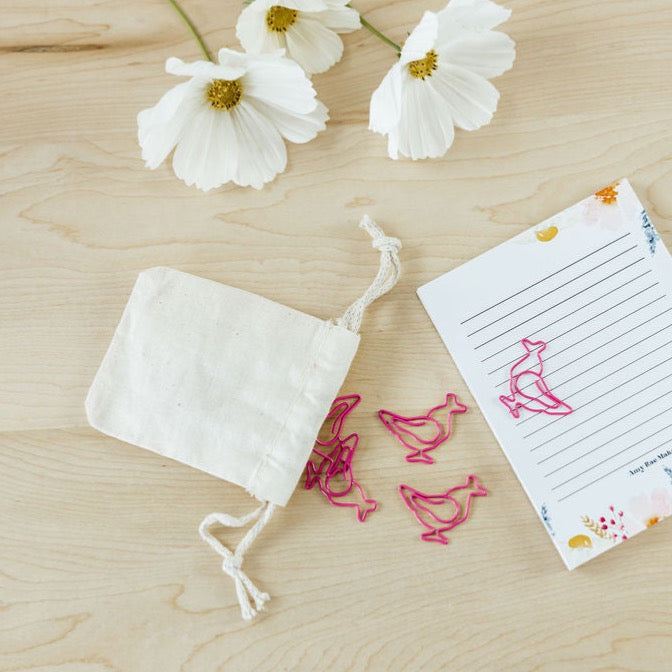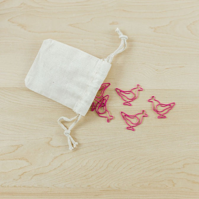 These chicken paperclips come in a set of 10 in a drawstring bag.