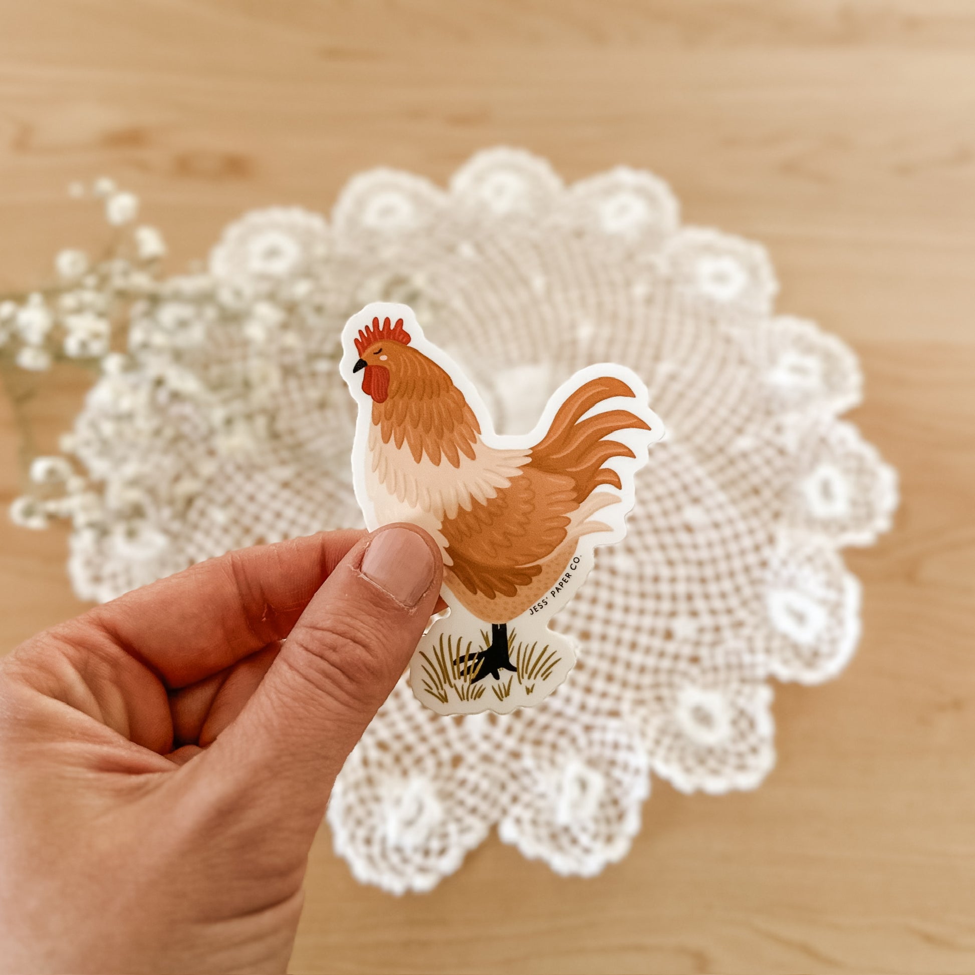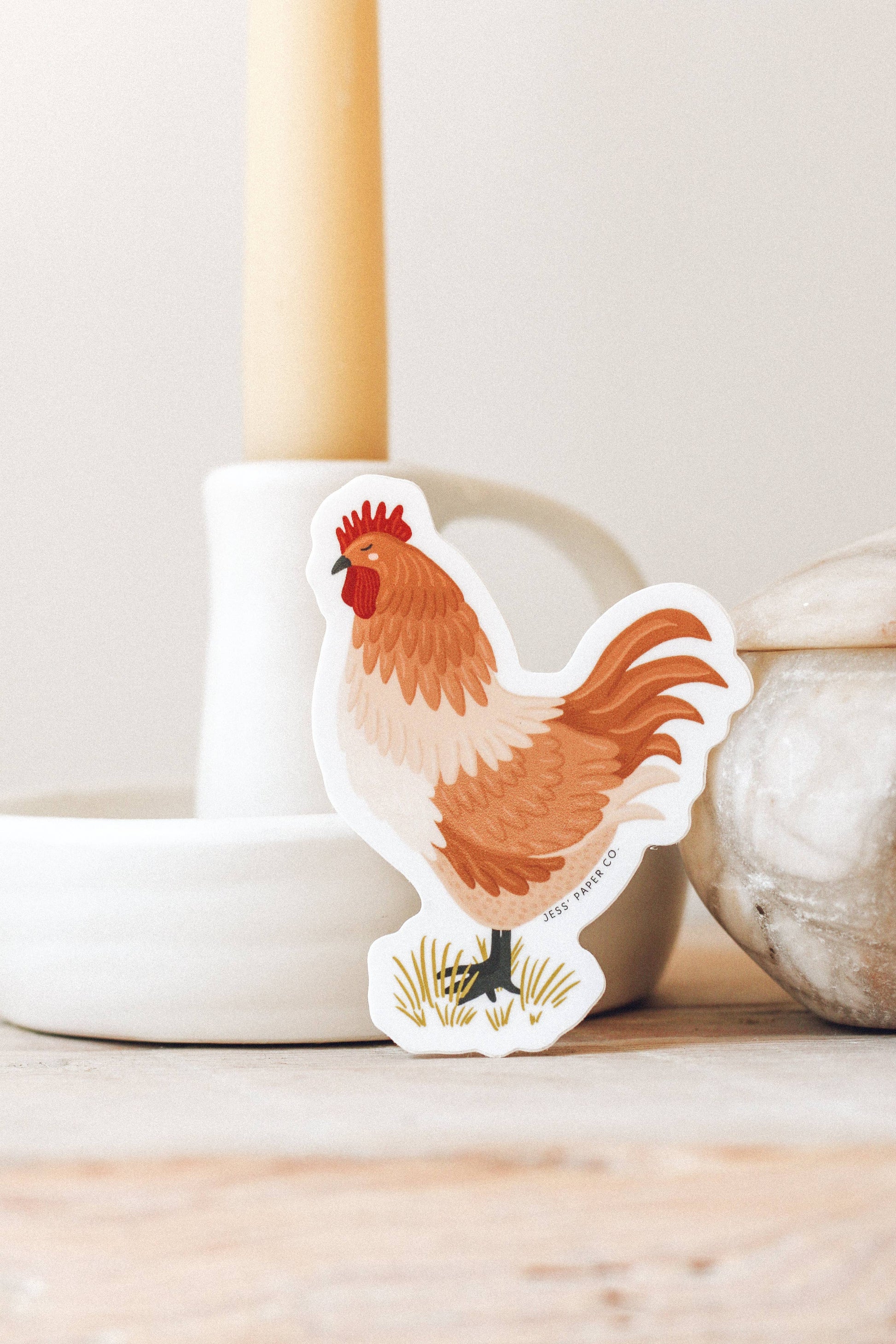 This Chicken Sticker is made on thick, durable vinyl that is safe from scratches, water, & sunlight.