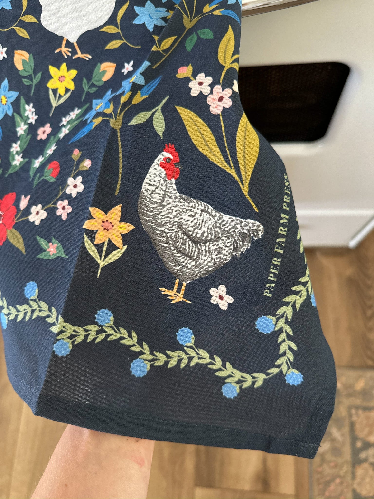Perfect for drying dishes, using as a centerpiece, or hanging as decor, this tea towel makes a fantastic gift for chicken lovers and gardeners!
