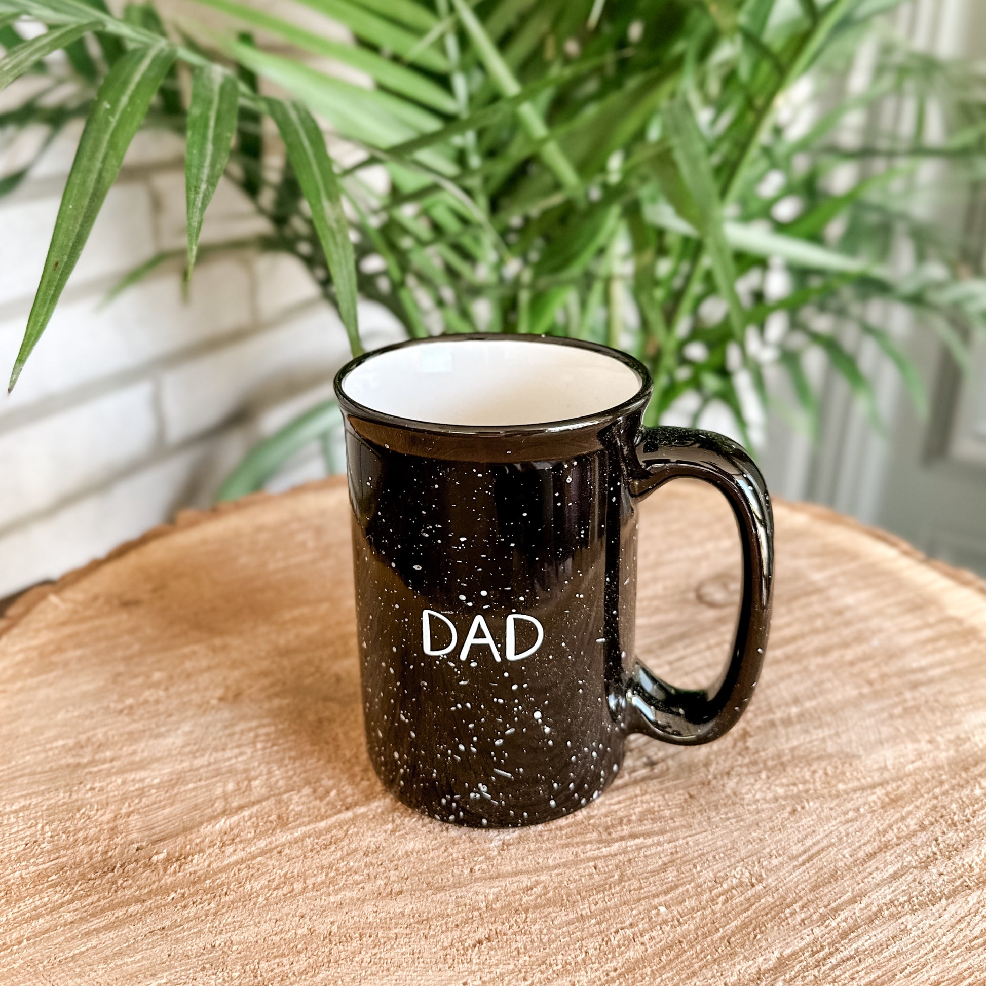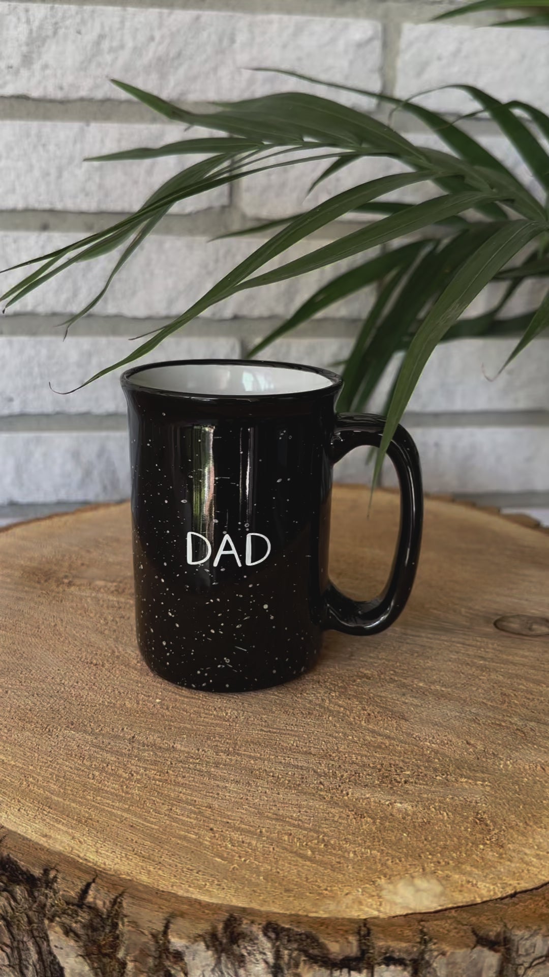 This beautiful black speckled 12 oz. camper mug is hand-lettered by Rudie. Perfect gift for all of the Dads in your life!