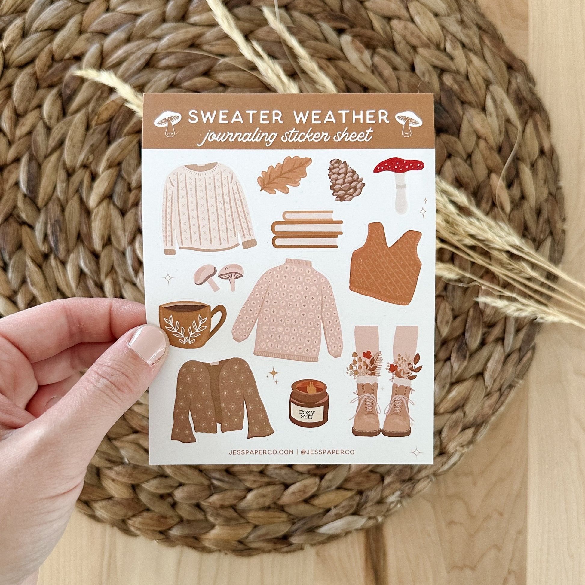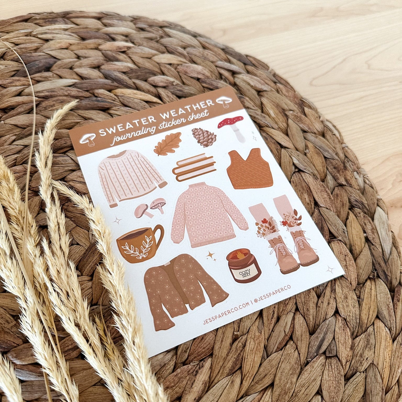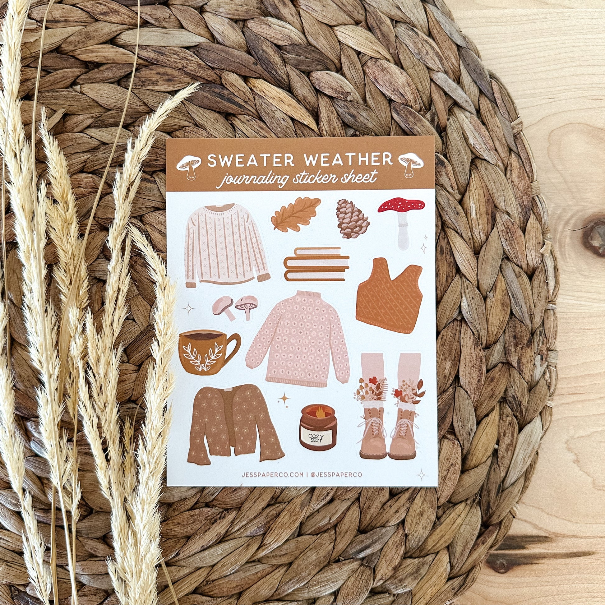 This Sweater Weather Sticker Sheet is made on thick, durable vinyl that is water reisistant and perfect for the inside of your planner or notebook. It is a compilation of all things that remind us of cozy season!
