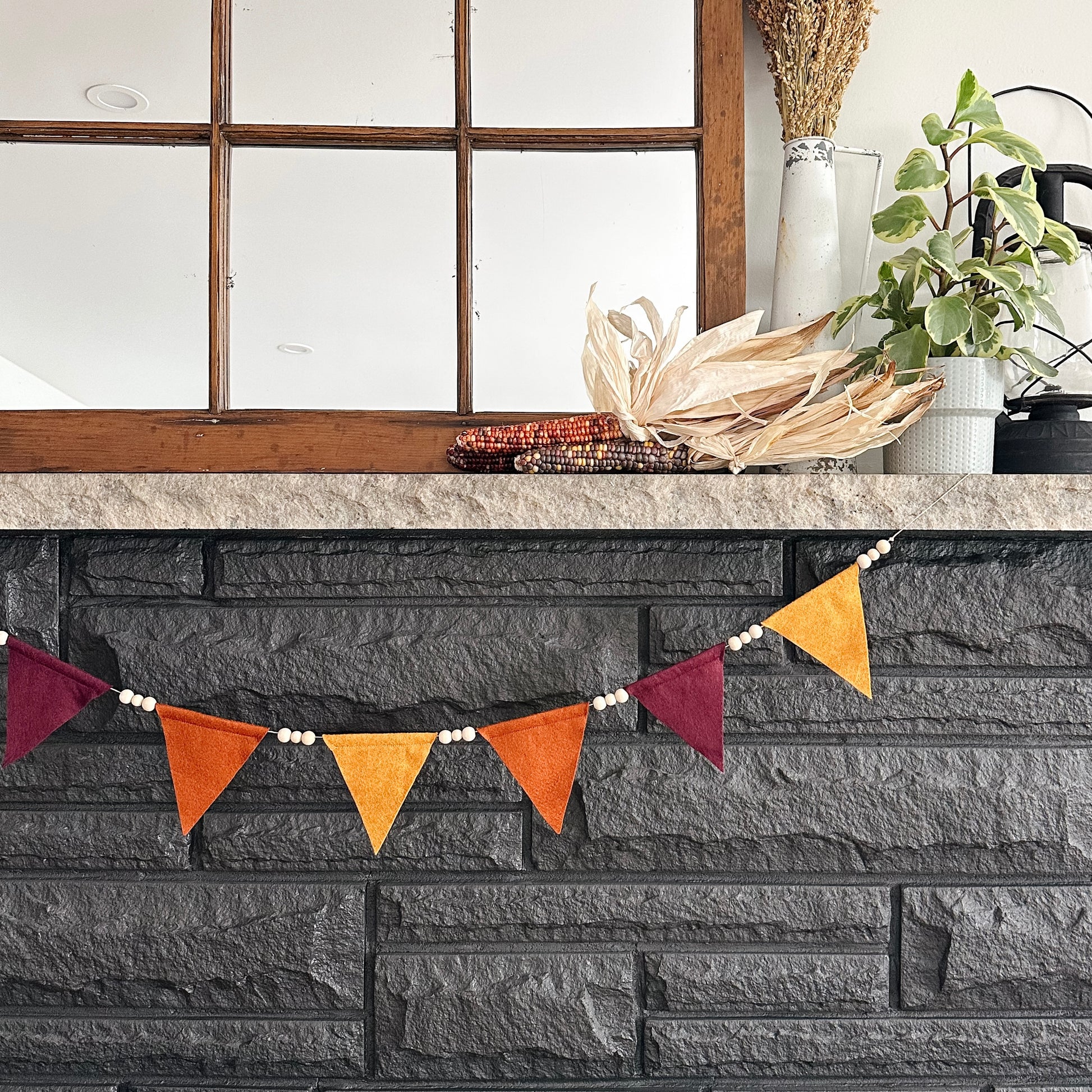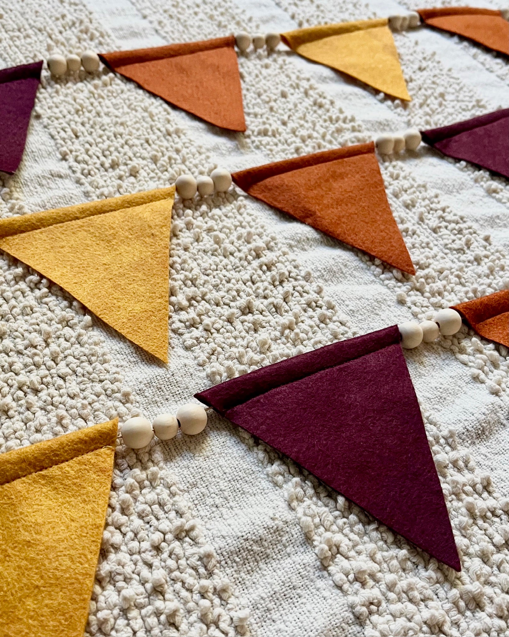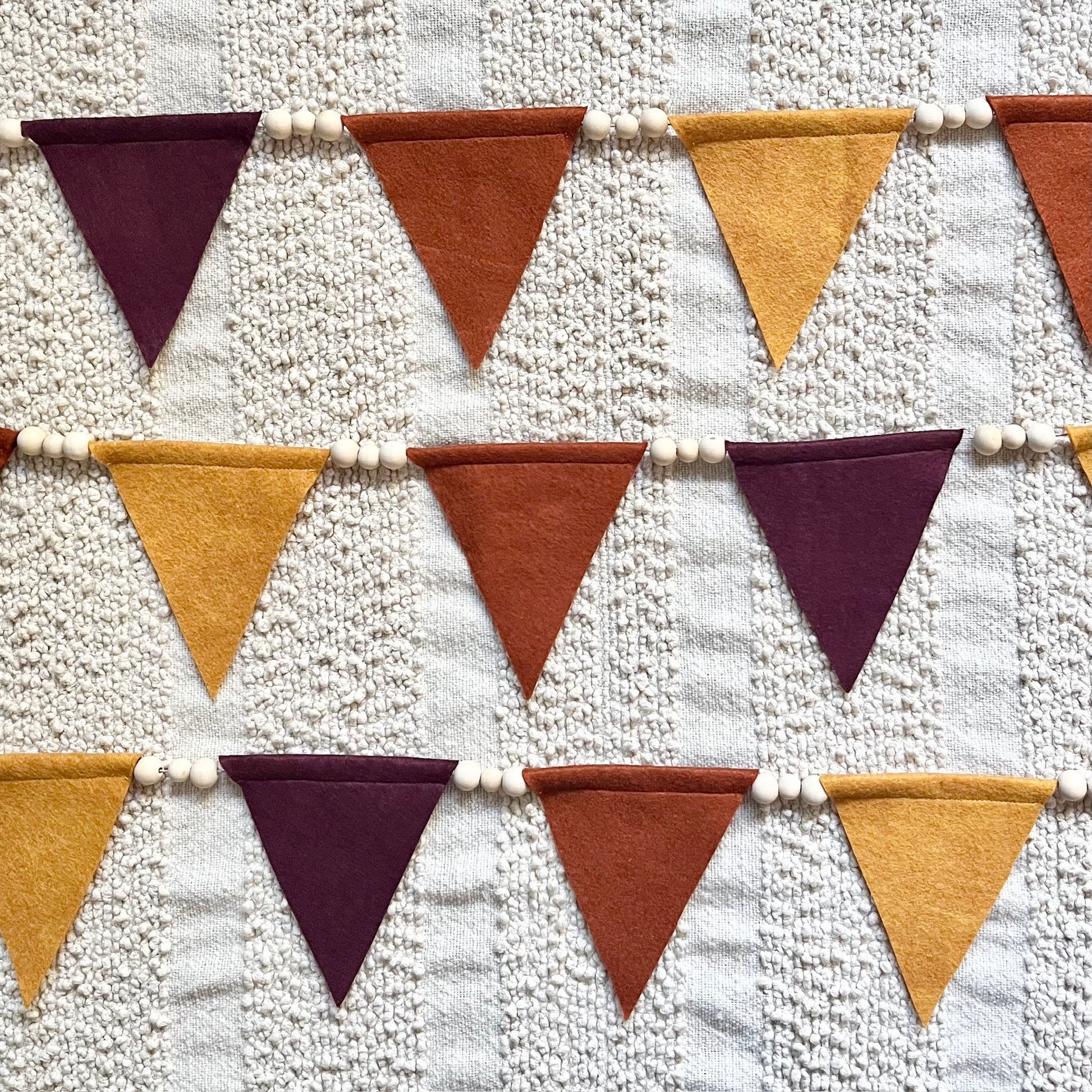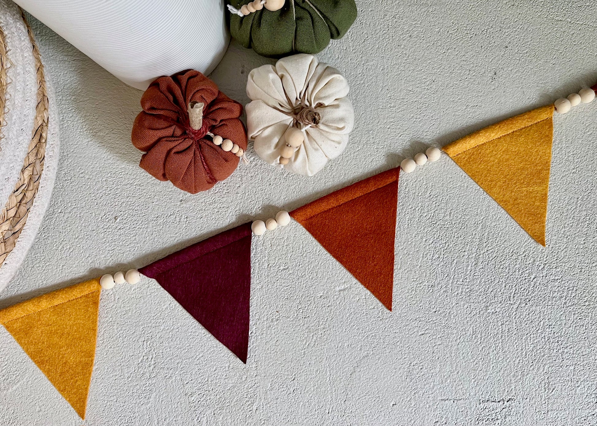 These beautiful felt garland buntings are such a fun fall accent for your home! Hang on your mantel, hutch cupboard or lay them on a tray around a candle - they'll bring a sweet festive touch to your living space.