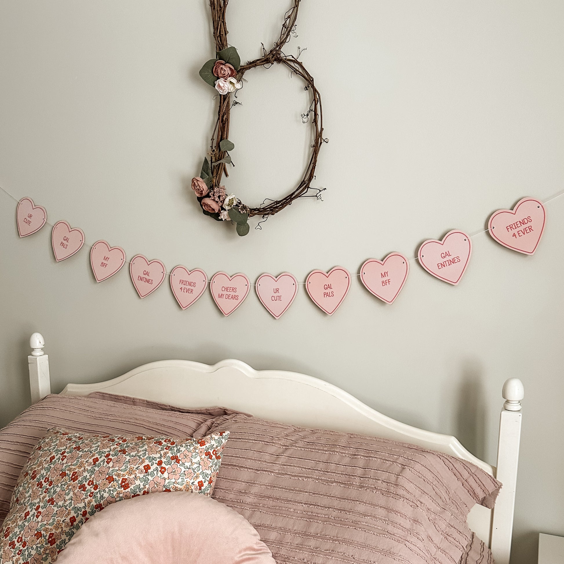 Each heart has a different saying. String it on your mantle, shelf, railing etc. to add the perfect touch!