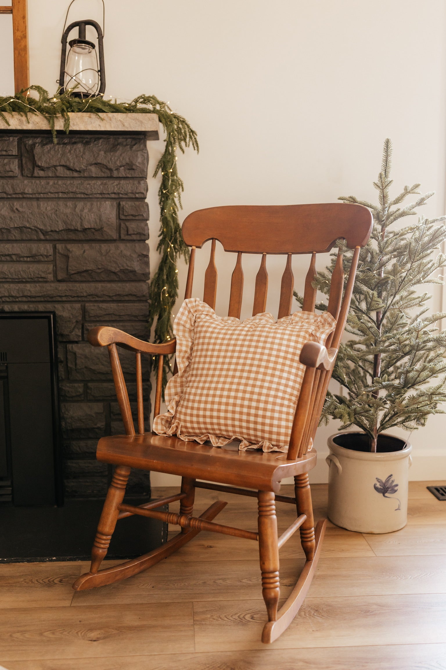 Gingham Ruffle Pillow | Taupe