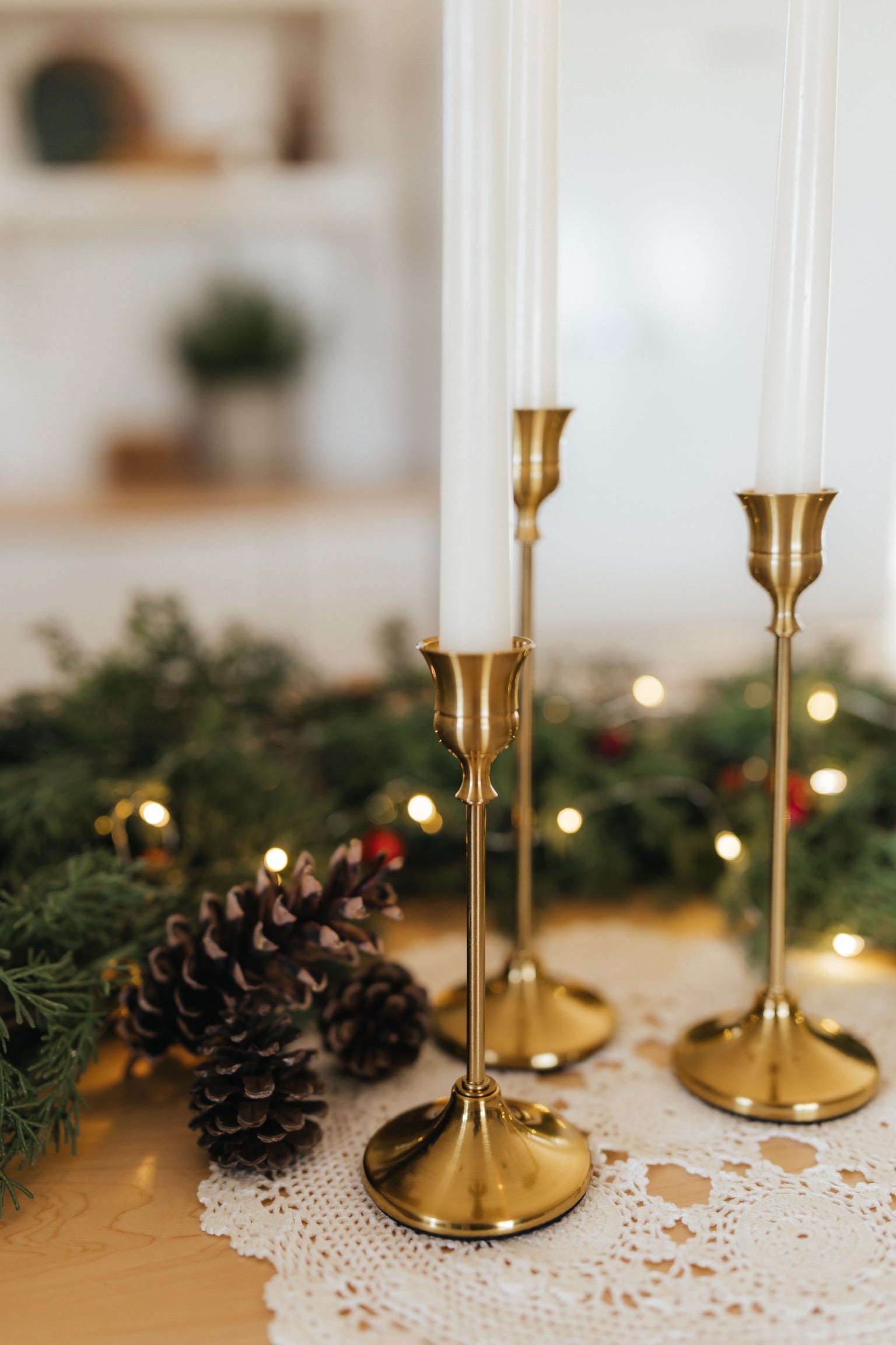 These three candlesticks instantly level up your decor and make the space feel warmer. This set is dainty, classic, and gold.