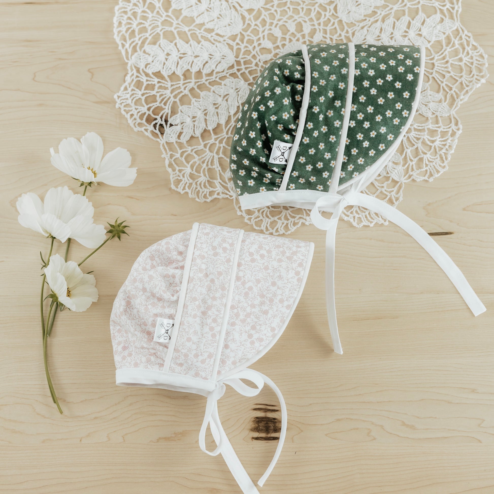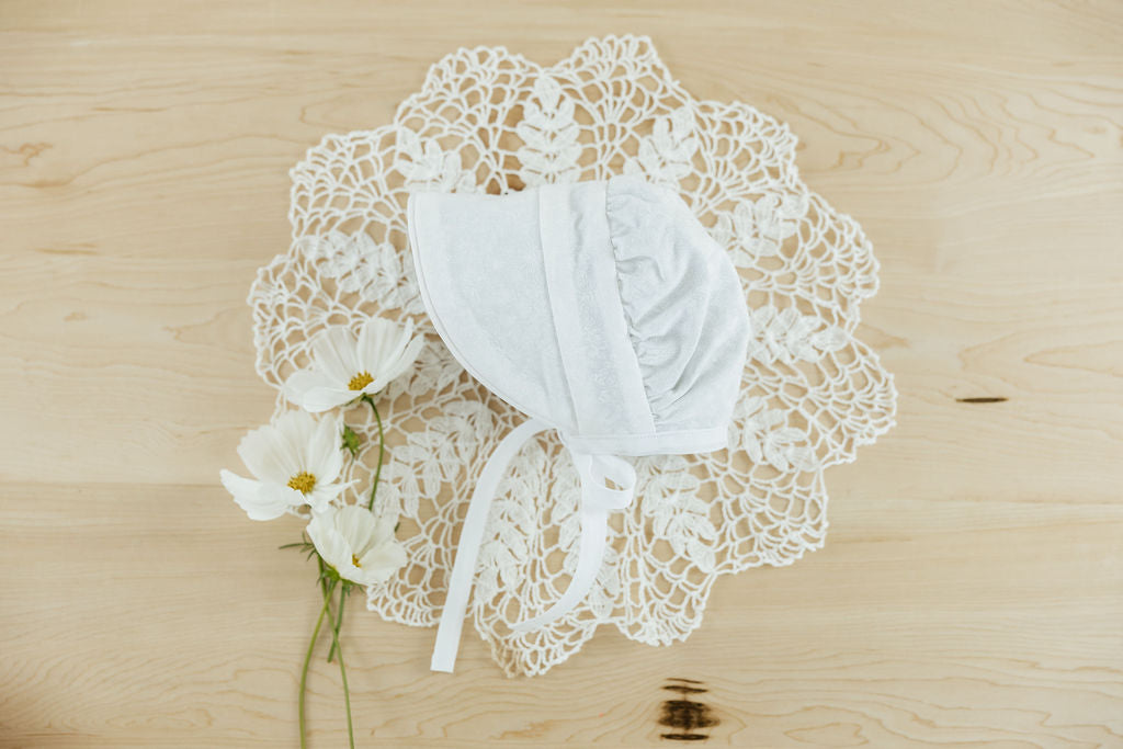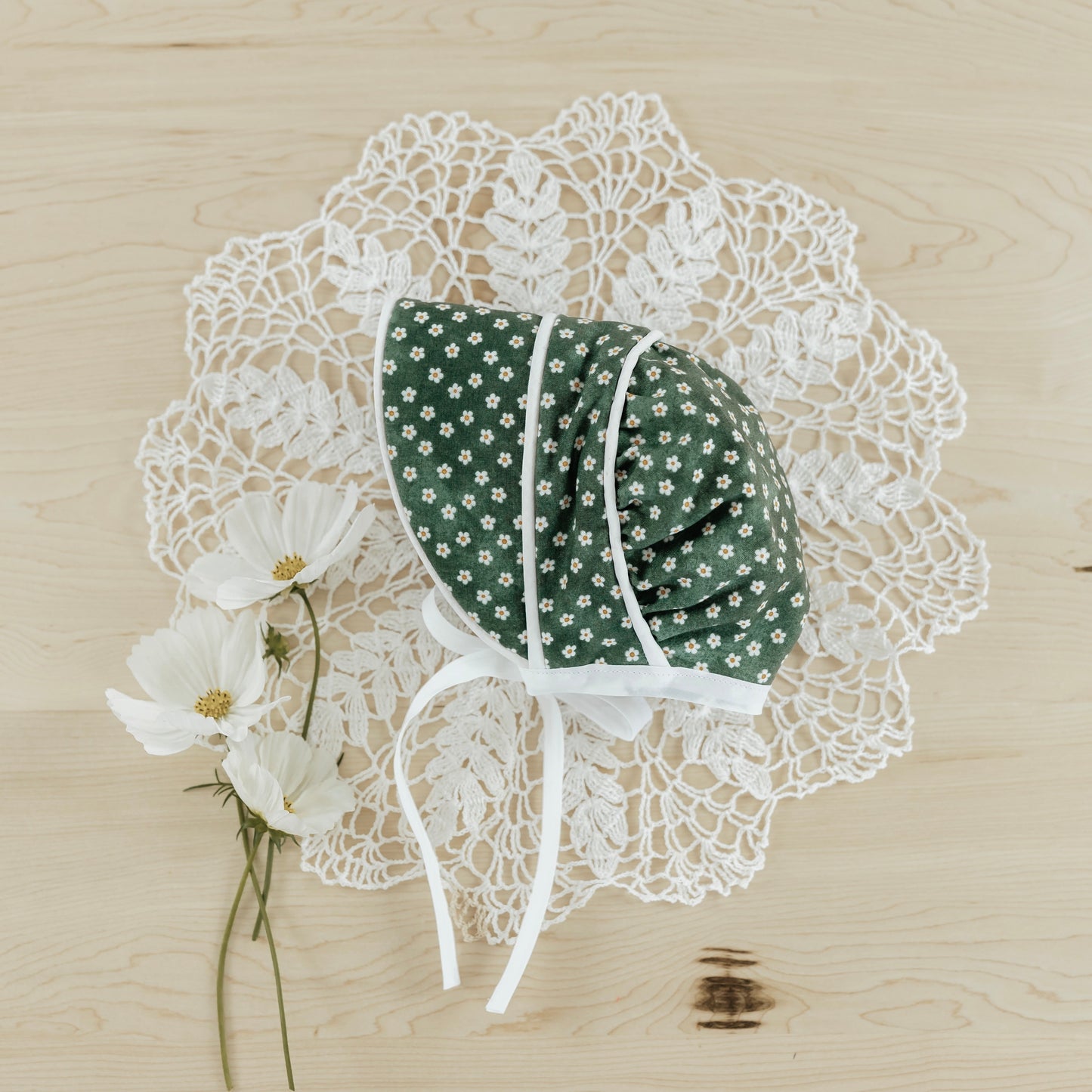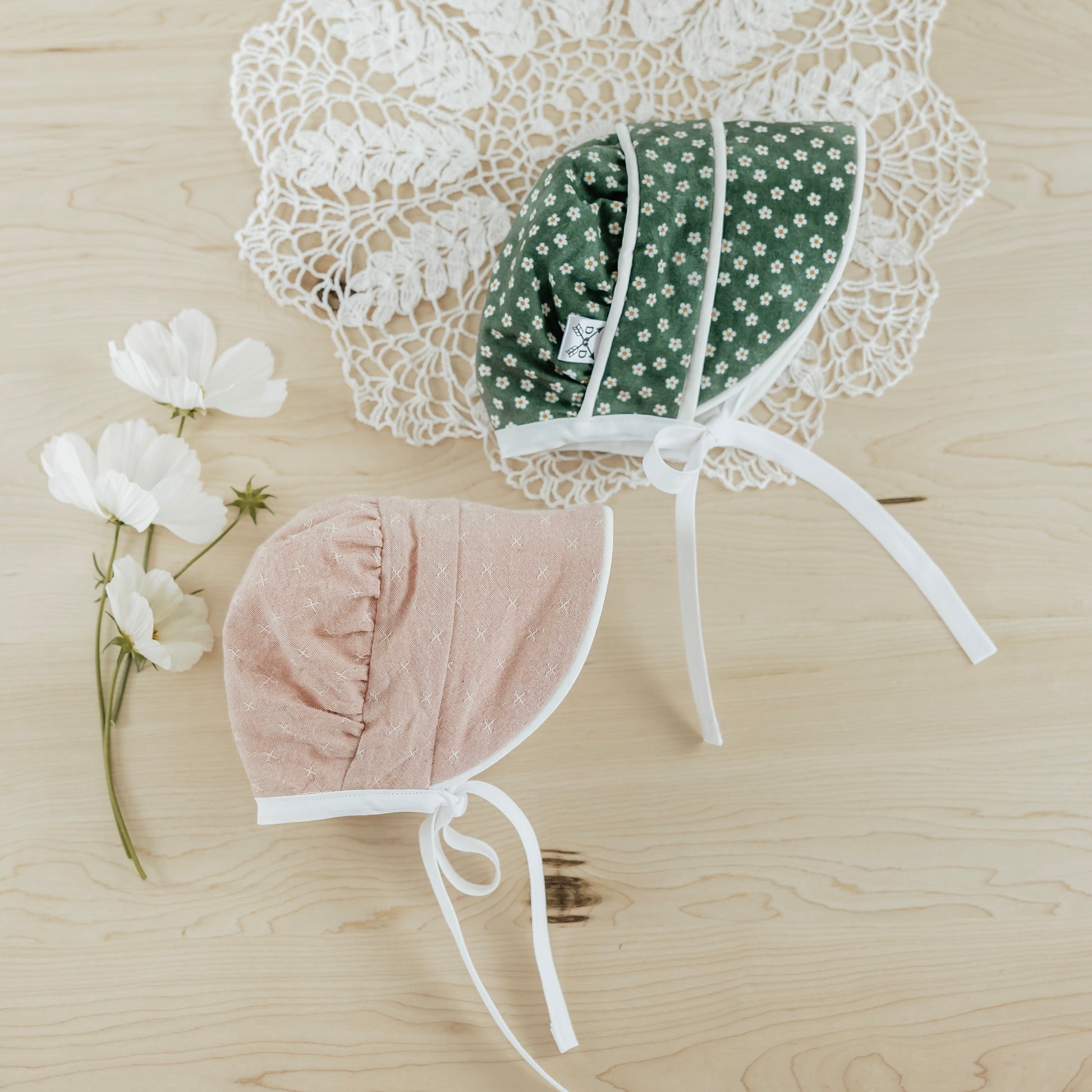 This vintage style bonnet is so sweet and will keep the sun and wind off your little one.