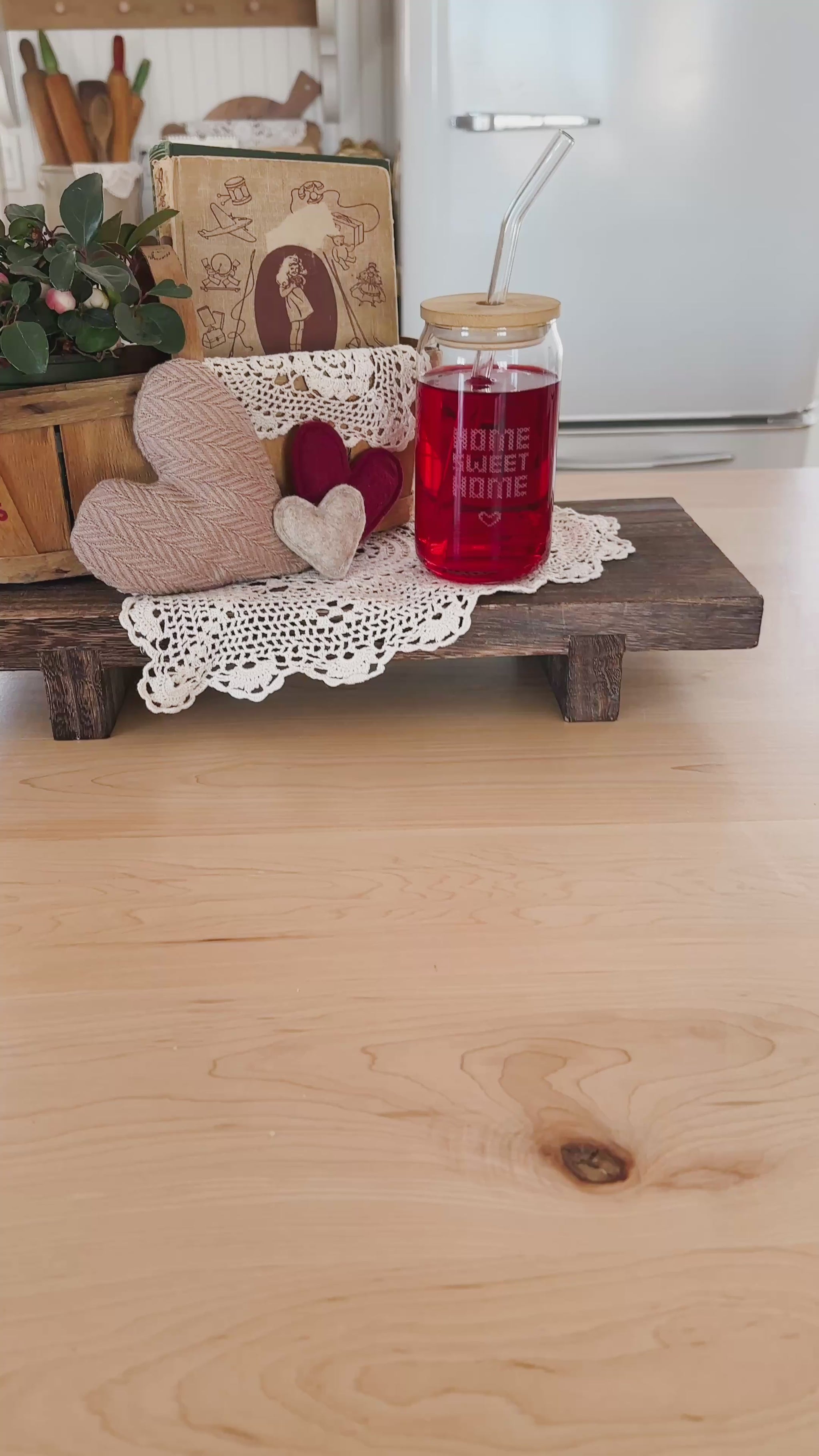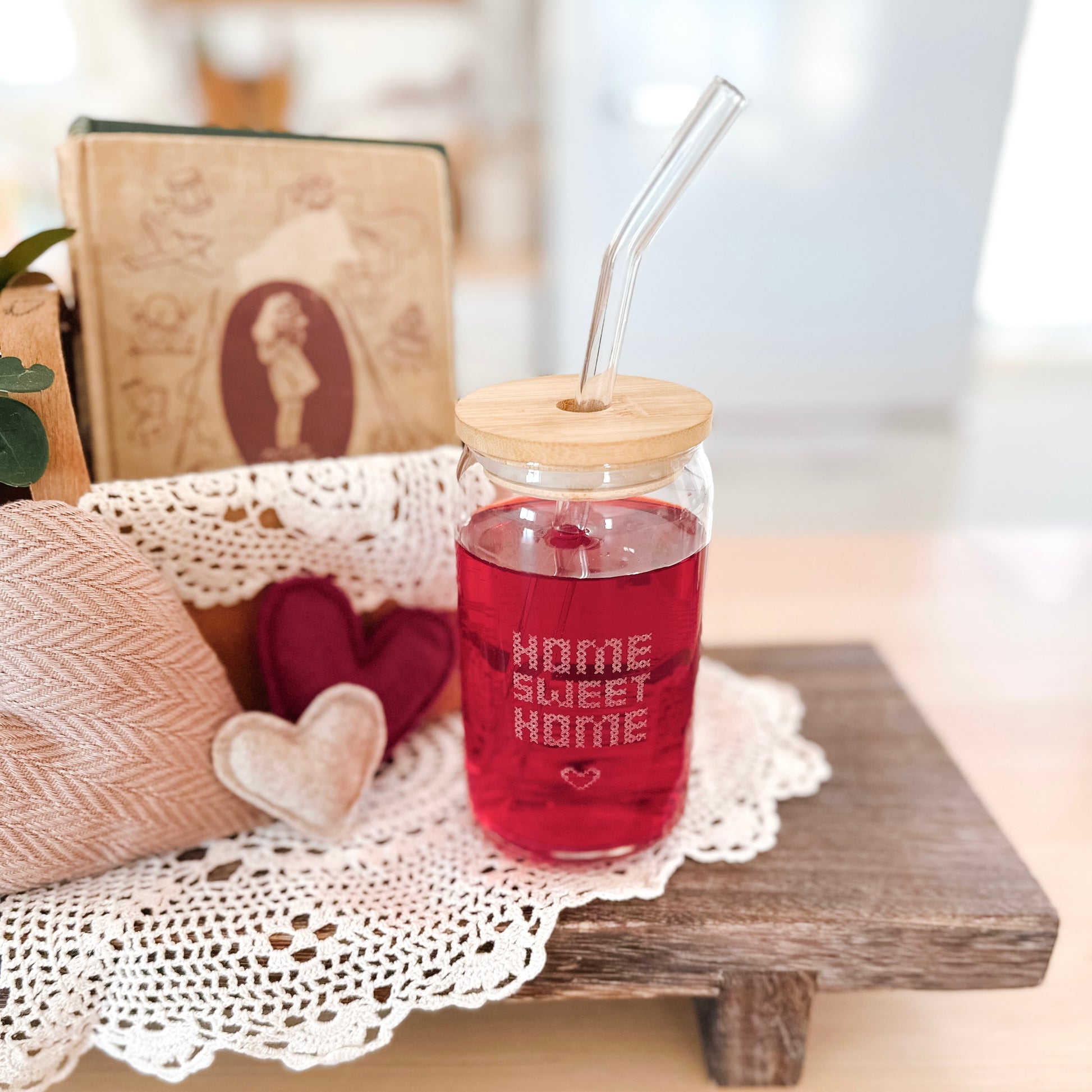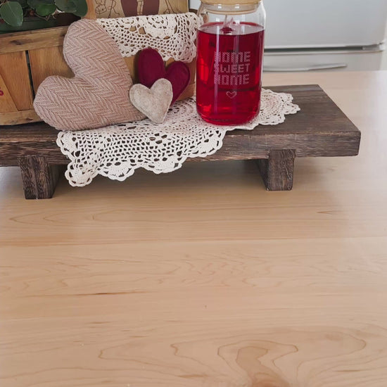 Laser engraved design features the cutest cross stitched Home Sweet Home design.