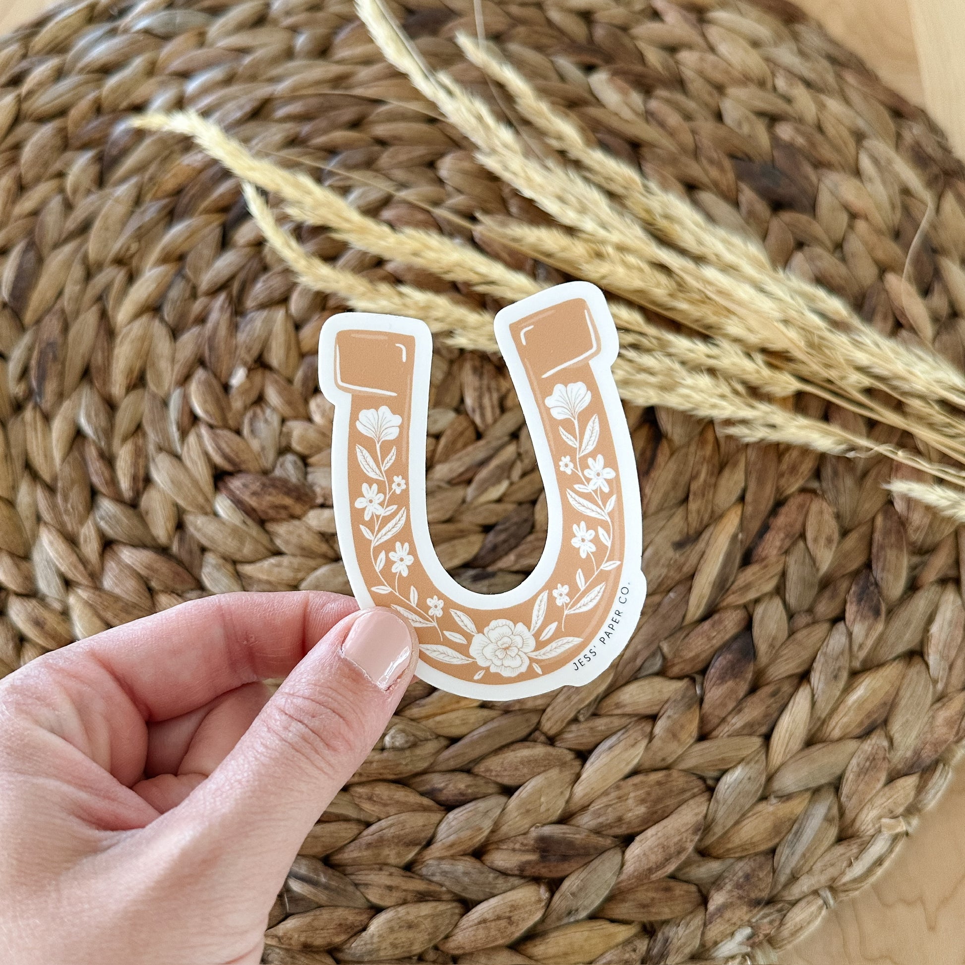 This floral orange horseshoe sticker features dainty florals that will make any car, laptop, or binder look fun and stylish.