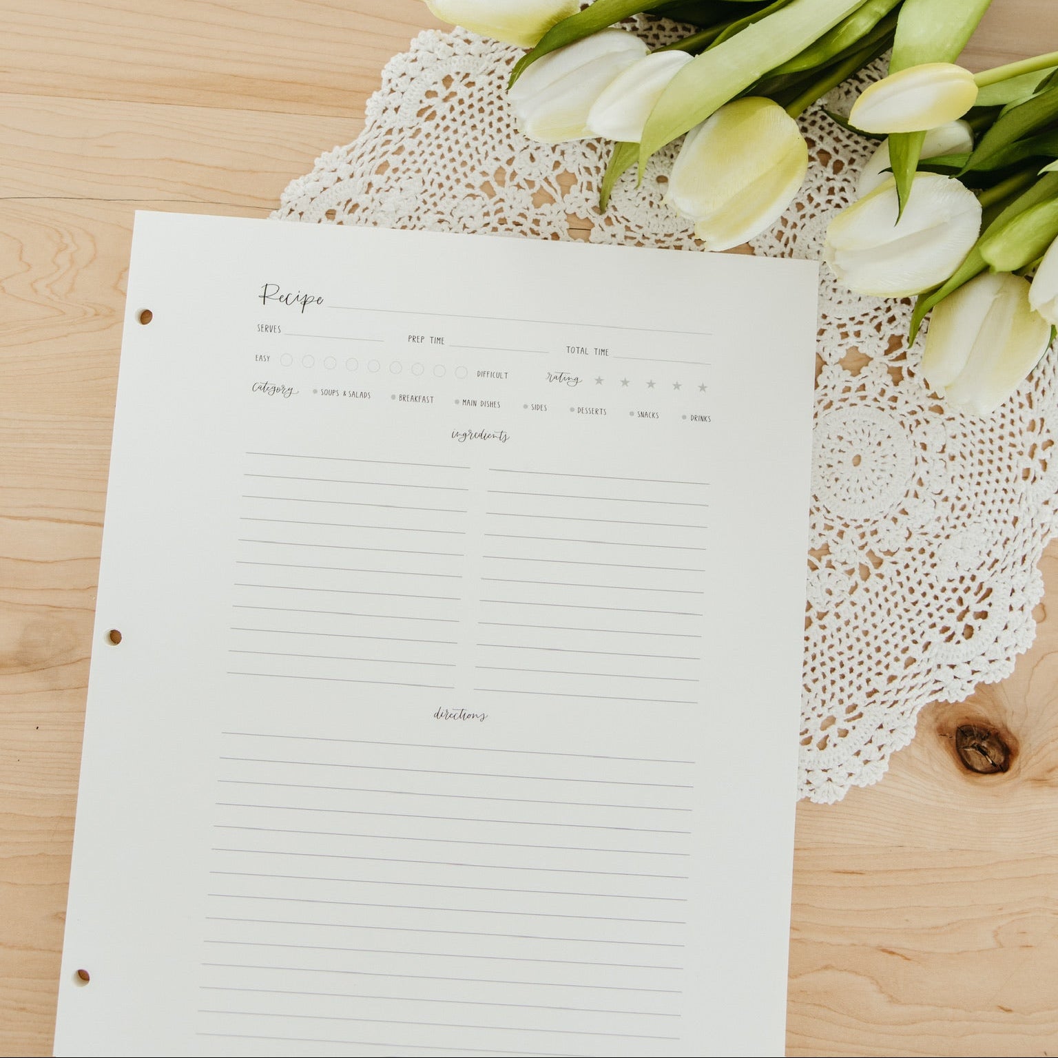 Enhance your recipe collection with the Large Recipe Page Set. These high-quality pages are designed to work with the Beige Gingham Large Recipe Binder, providing ample space for your culinary creations. Ideal for gifting alongside the binder or for anyone seeking to expand their recipe organization.