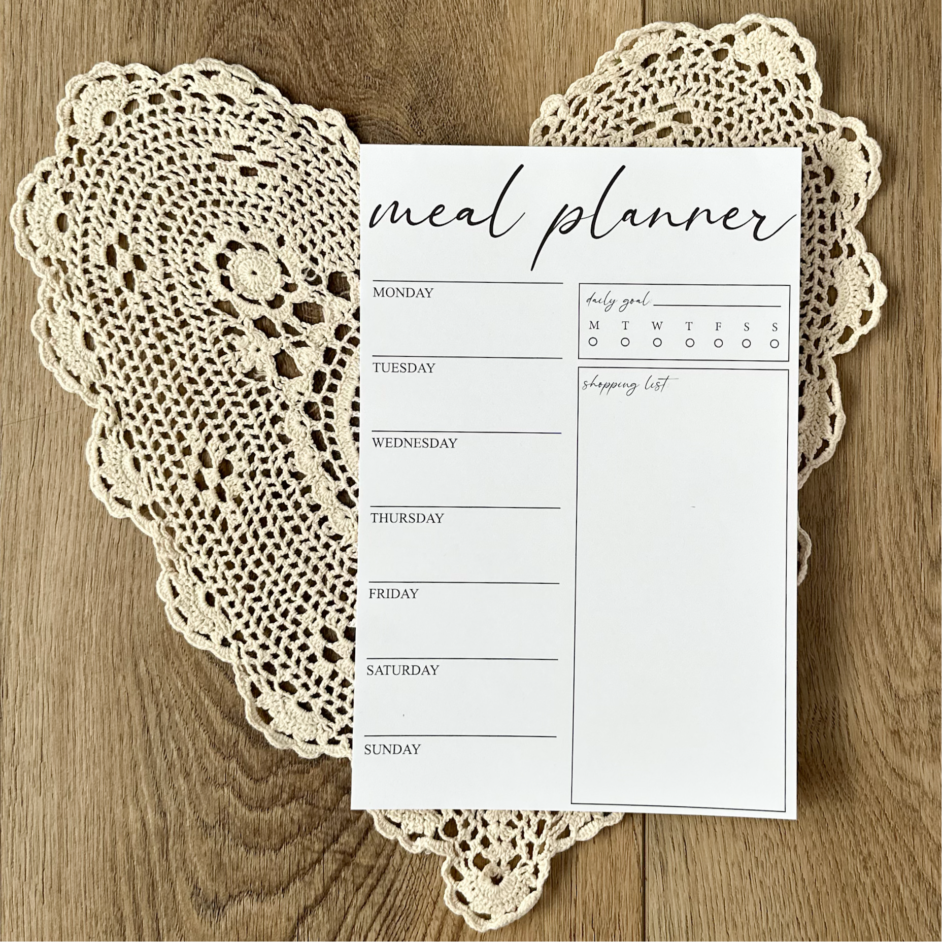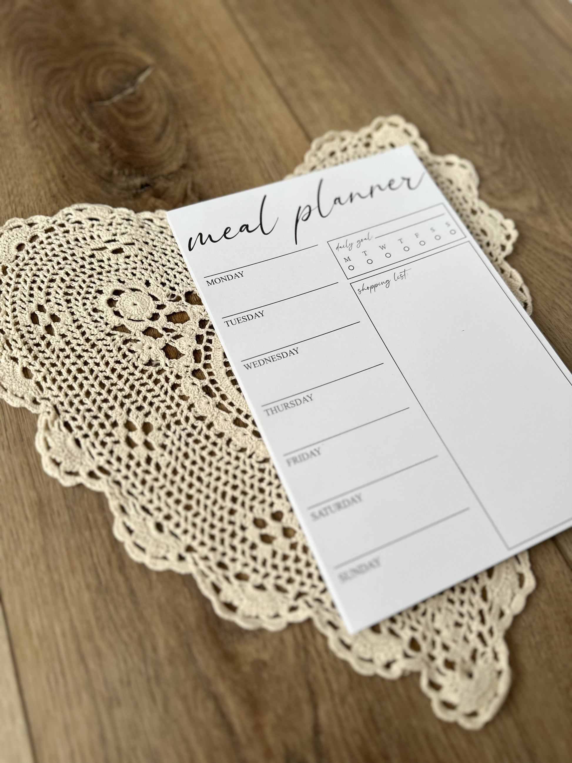 We love this meal planner, its a great size with lots of room to write out your meals and snacks! Also has plenty of room for the actual grocery list. Very happy with it!