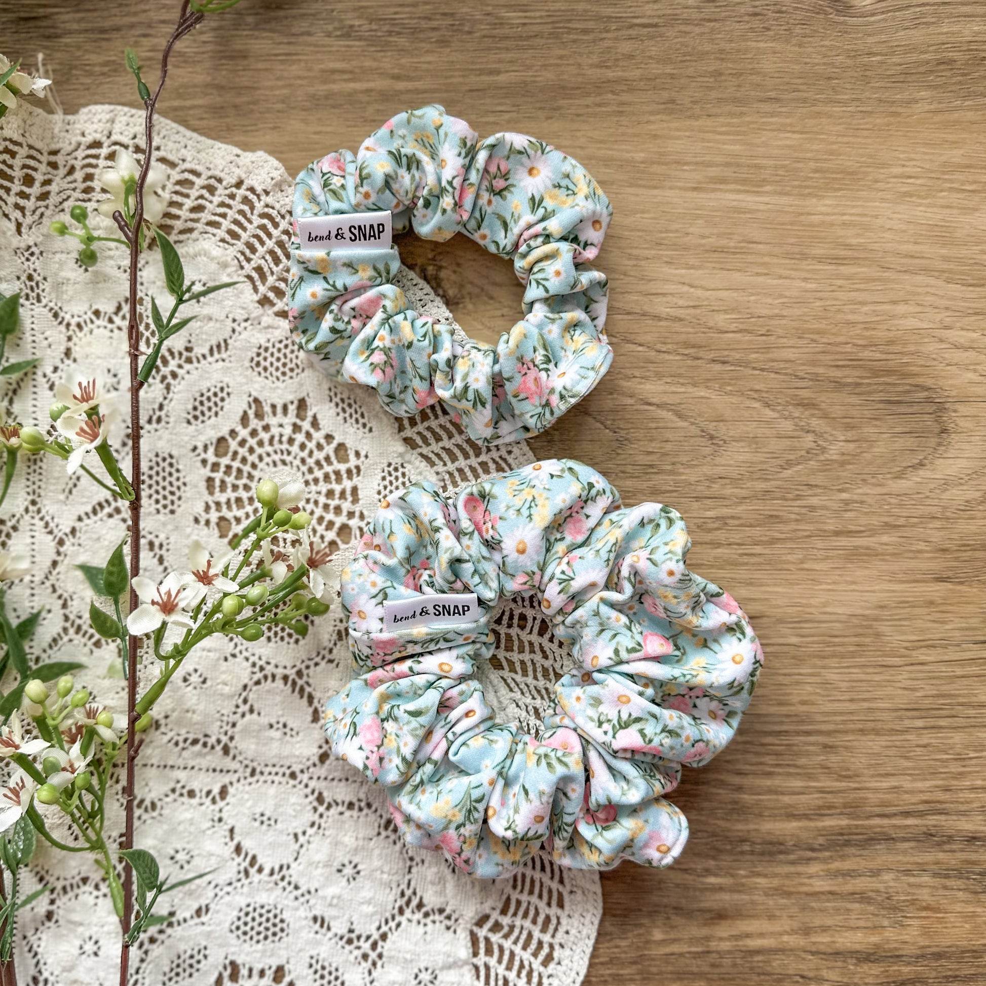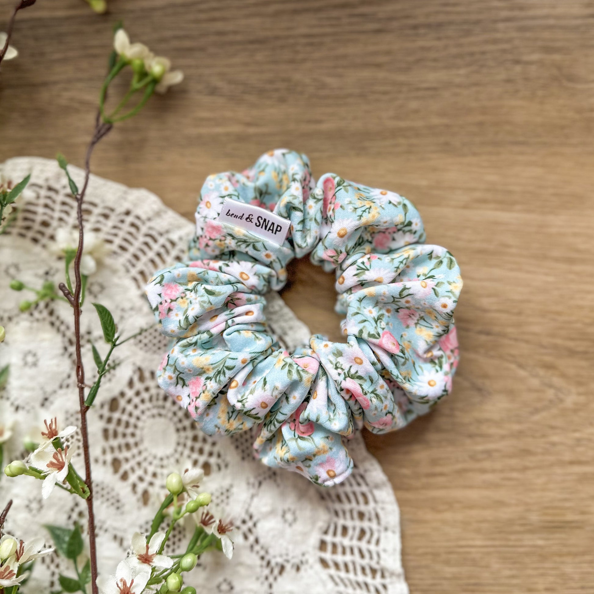 Mint Spring Floral Scrunchie