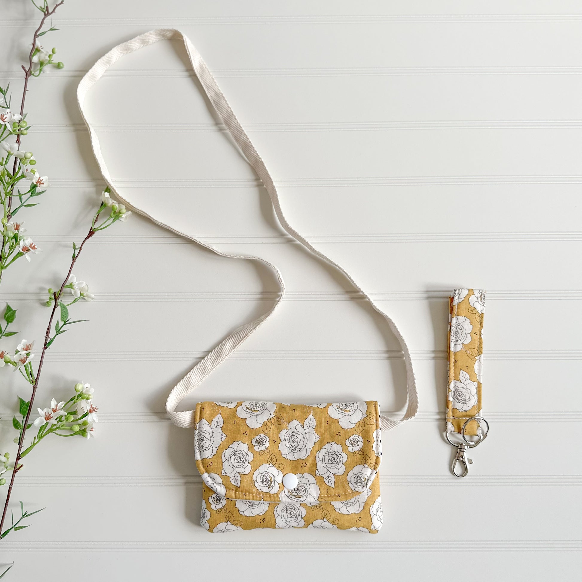 Toddler bag measures 6x4 inches. Straps measure 20 inches from the top of the pouch to the top of the strap.
