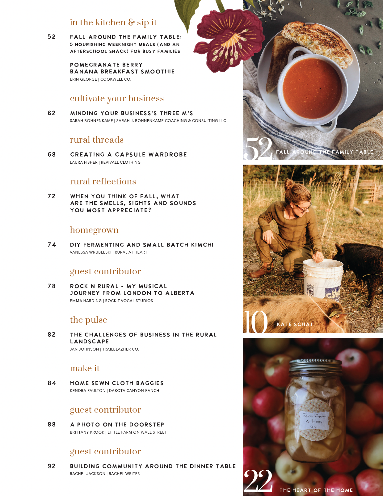 The fall 2023 issue of Trailblazher magazine will have you thinking about slowing down and savouring more of life. With the pace of summer behind us, our fall issue will bring you back to some of life’s basics with Kate Schat @venisonfordinner and Alyse VanRamele @the_wild_stuff_co – our two features in this publication. We’ve also got some timely ideas from - how to create a capsule wardrobe, fermenting and a guest contributor sharing her thoughts on the softer side of farming. With 96 pages in this issue, we’ll also be diving into ‘Minding Your Business’s Three M’s’ with Sarah Bohnenkamp, how one woman built community around the dinner table, and a look into the partnership two modern millennial women have created to support the Ag industry… and so much more! You’ll want to cozy up with a homemade pumpkin spice latte and savour all the stories and ideas contained within.