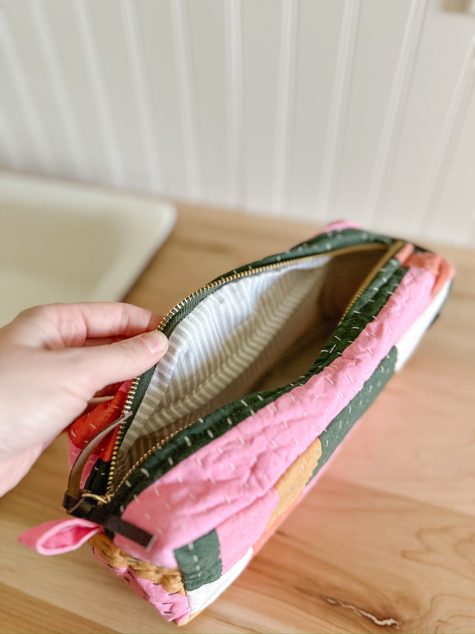 This colour block pouch is so versatile! Use it to store your cosmetics, keep your diaper bag organized, or even as a pencil case!