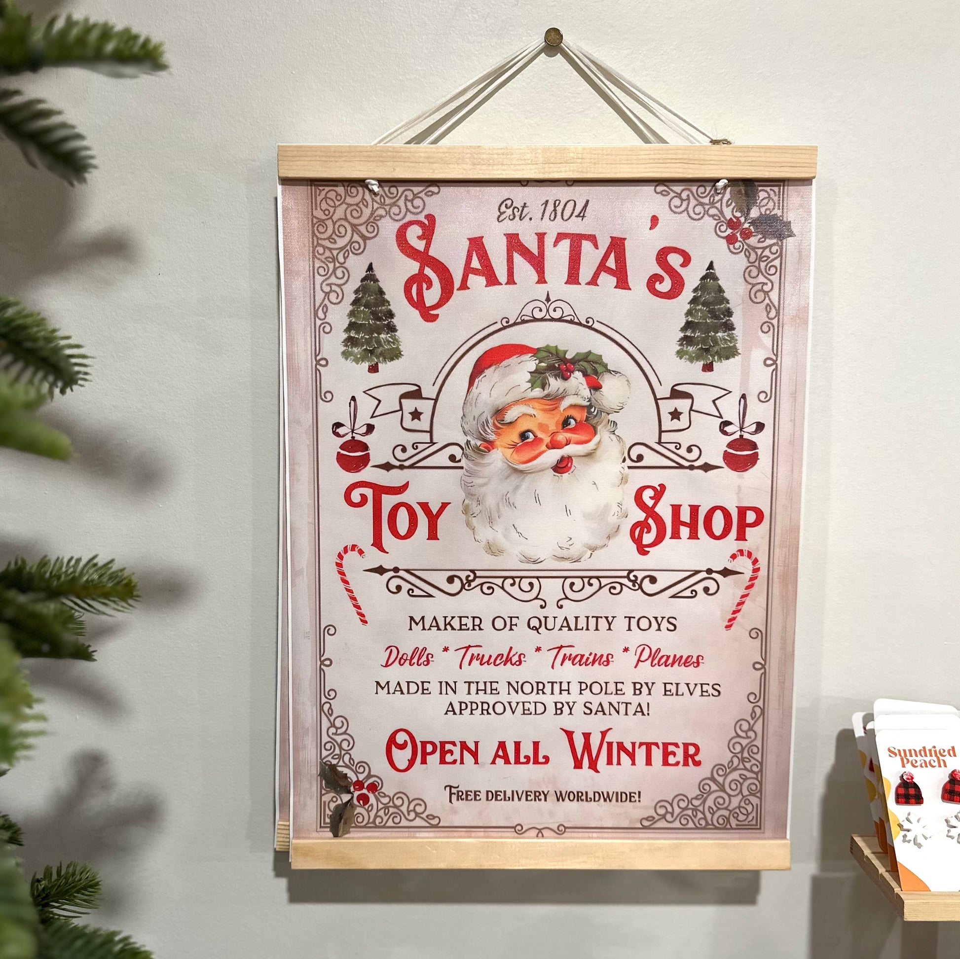 This classic Santa's Toy Shop sign is ready to be hung in your home!