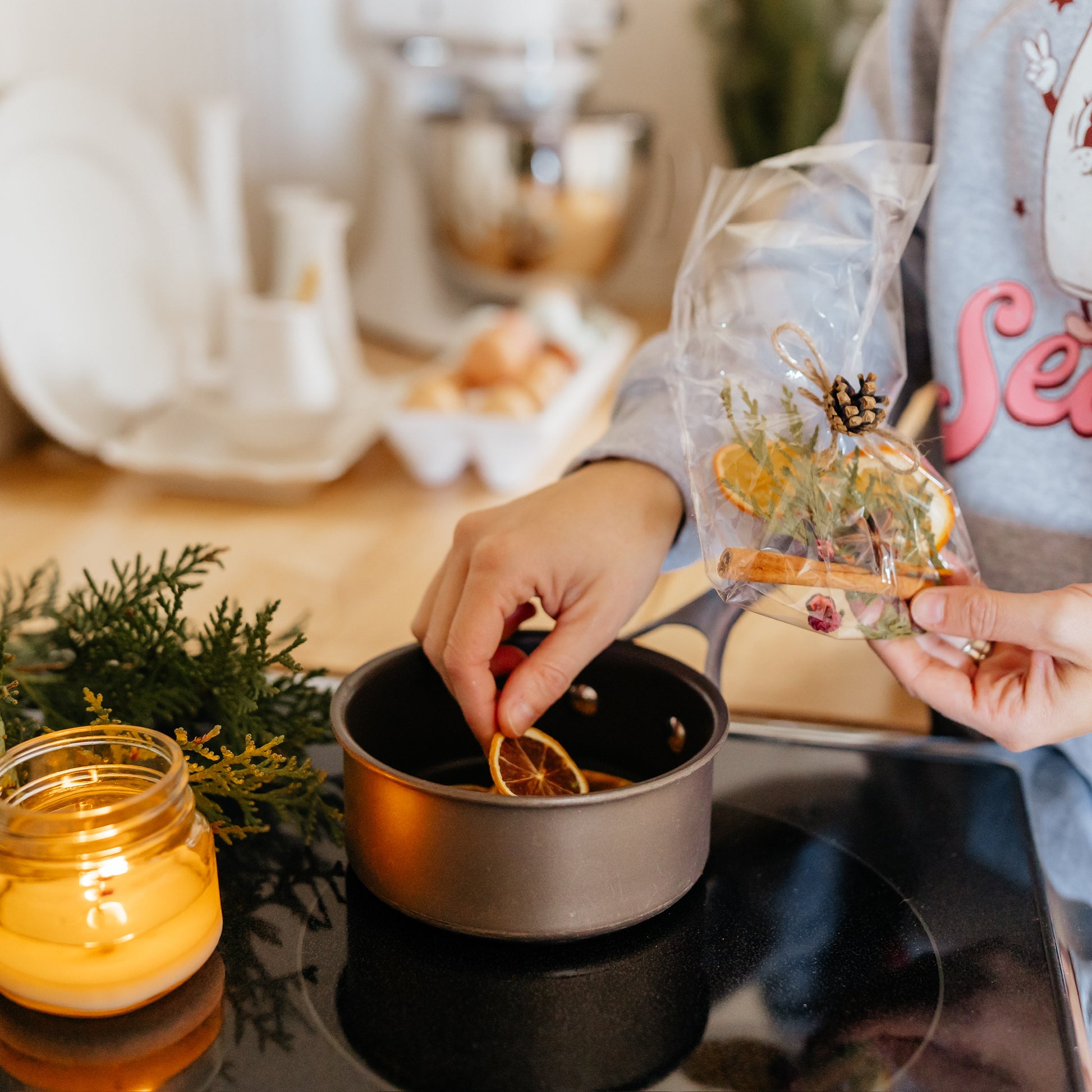 The easiest way to have your kitchen smelling like the holidays! Just add water, and simmer!