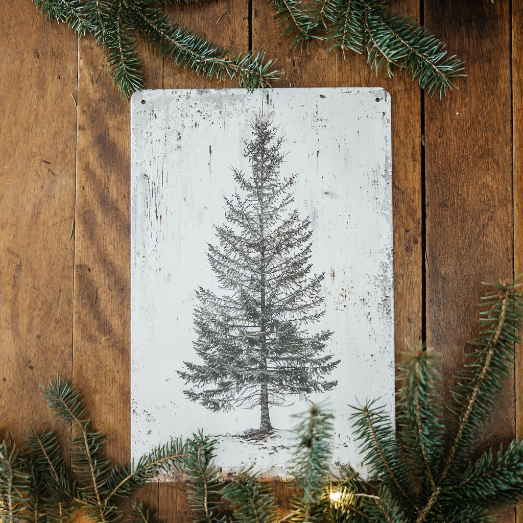 Add to your winter decor with this vintage inspired Tree Tin Sign!